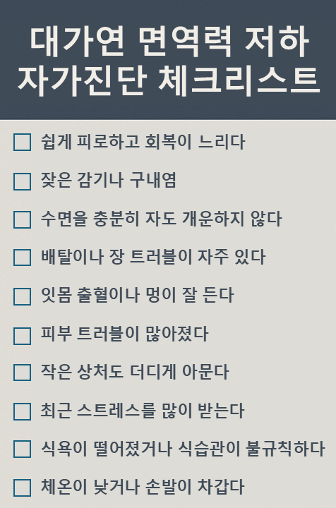 (아래 항목 중 해당되는 것이 많을수록 면역력 저하 상태일 수 있습니다.)